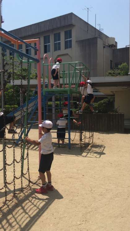 今日は体育の時間に遊具の安全な遊び方をみんなで確認し、一つずつ順番に遊びました。