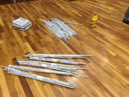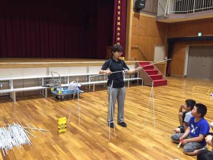 今日は、先週から子どもたちがクルクルクルクル・・・たくさん丸めて筒状にした新聞紙の登場です。
