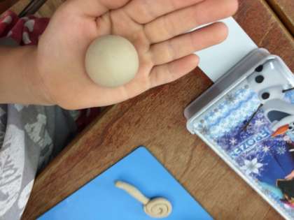 かたいねんどをほぐした後、ひびや線の入らないようにいろいろなかたちを作りました。
