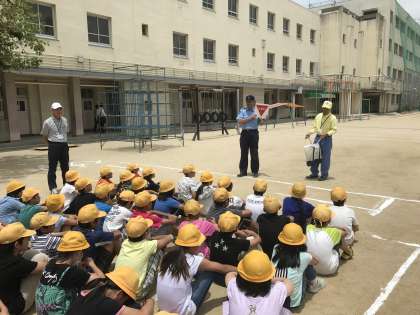 今日は4時間目に旭警察署の方々や、区役所の方々を招いた交通安全指導がありました。