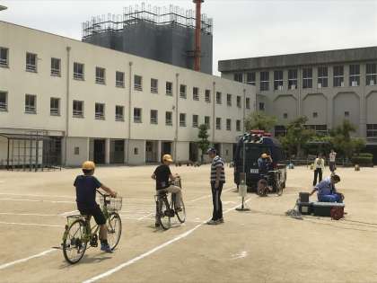 実際にどういったことに注意をしながら自転車を運転すればよいのか、詳しく指導をしてもらいながら体験をしました。