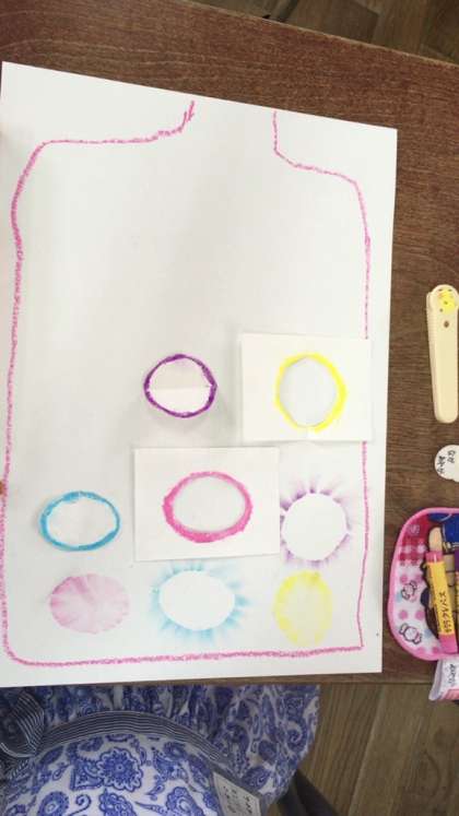 型を作って型の周りにパスをつけ、指でぼかしてきらきら光るビー玉を表現しています。