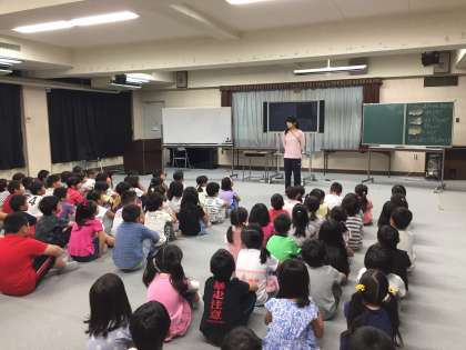 校長先生のお話を聞いた後、DVD「おこりじぞう」を見ました。