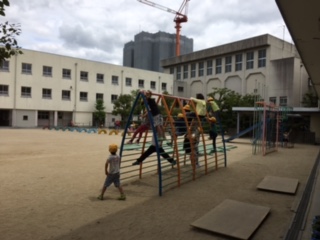 ジャングルジムにぶら下がったり、鬼ごっこをしたり楽しそうでした。