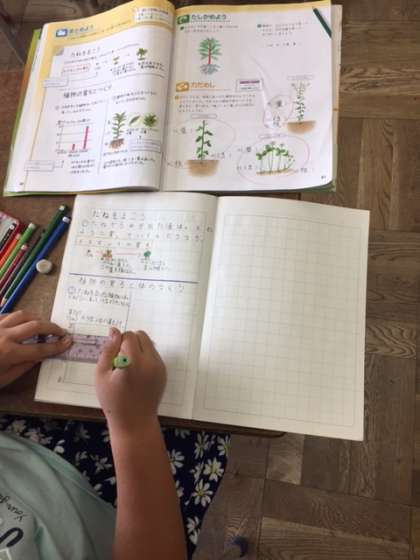 「たねをまこう」の単元の学習が終わったので、ノートに単元のまとめを書きました。