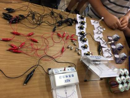 班で協力して、回路をつくり、実験結果を