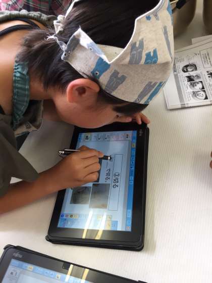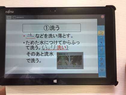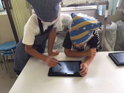 事前学習で、タブレットを使って学習したレシピをスライドショーにして、調理の手順を再度確認しました。
