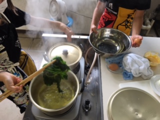 ほうれん草のときよりも長い時間、やわらかくなるまで茹でました。