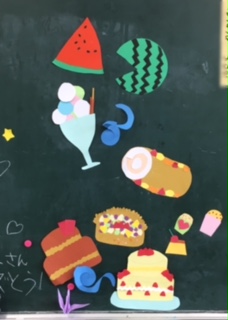 教室の後ろの黒板が夏らしくなっています。