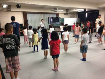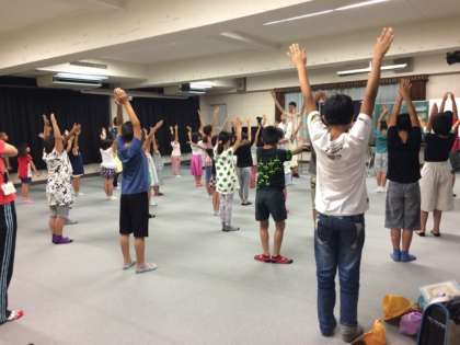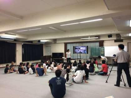 放課後には、ラジオ体操コンクールのビデオ撮影があり、1年生も何人か参加していました。