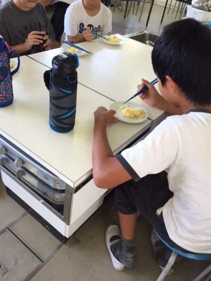 今日は、終業式で6年生が全校児童の代表として、皆勤賞の表彰状をいただきました。1日も休まず登校したことはとても素晴らしいことです。昨日は、じゃがいもを収穫してパーティーをしました。1学期みんなとても頑張りました。
