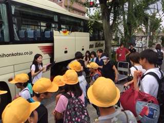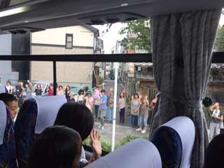 たくさんの保護者に見送られ、城北小学校を出発しました。