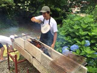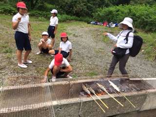自分でつかんだ魚を調理してもらい、塩焼きにしてもらいました!