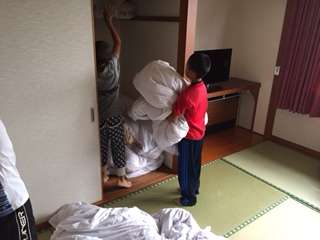 みんな目覚めが良く、起きてすぐに布団の片付けが始まりました!