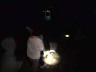 ナイトハイクは二列になり、懐中電灯で行きました。
