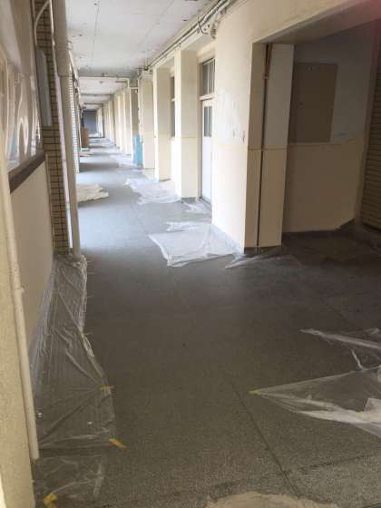玄関、1号館1階、1年生の教室がある2号館1階の壁を塗りなおしていただき、白くきれいになってきています。