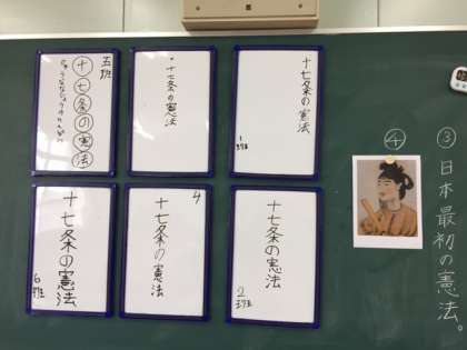 先週から、漢文の学習をしています。今日のめあては、中国の漢文にならって、日本人が書いた「○○○○○○」について考えよう!でした。子どもたちに3つのヒントをだしました。一生懸命班で話し合っていました。その結果、見事全班正解することができました。