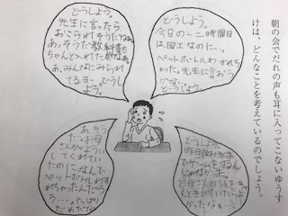ゆうすけの気もちについてグループや全体で考え、ワークシートにまとめました。