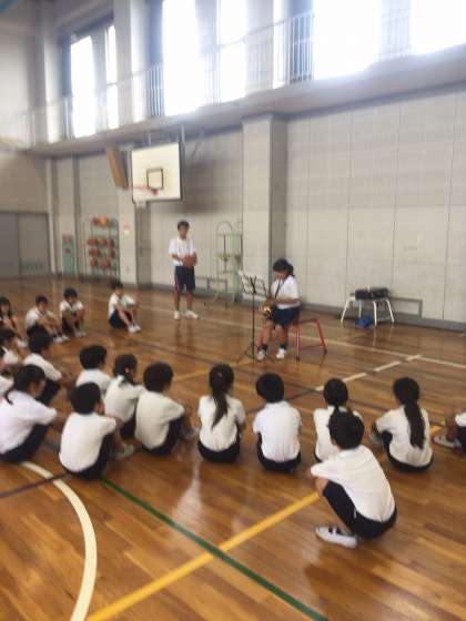 得意なことを生かした授業ということで、サックス演奏、バスケットボール指導をしました。