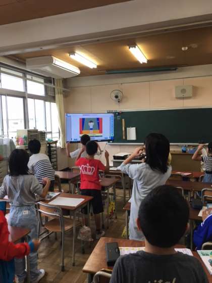 体を動かしながら、英語に親しみました。