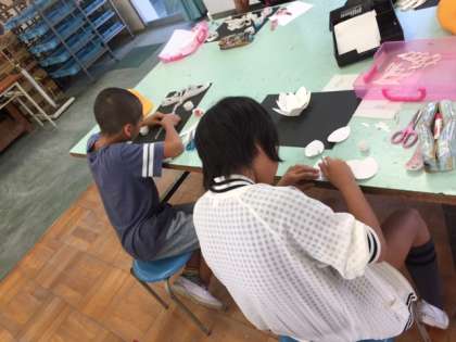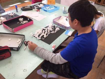5年生では、図画工作科で紙アートをしています。