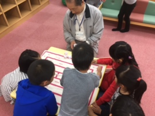 昼休みはくすのき図書館で、図書ボランティアの方がすごろくゲームを教えてくださいました。
