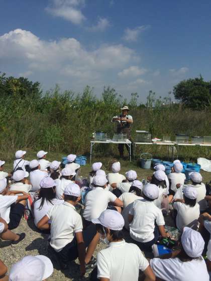 4年生 わんど体験 10月10日(火9 公開日 2017/10/10 更新日 2017/10/10 4年生 わんど体験の後は、実際に見つけた魚や貝について説明していただきました。 ブルーギル、カジカ、モツゴ、泥貝 植物では、くるみの実やねこじゃらしなどもありました。 元々日本にいたもの、外国から来たものなど、様々な生き物が淀川に住んでいることが分かりました。 いいね(0)