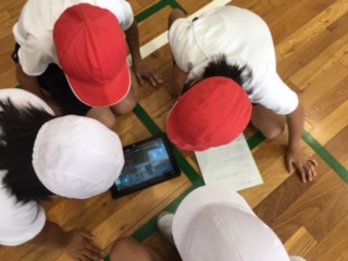 今日の体育の授業も前回に引き続き、タブレットを使って学習しました。