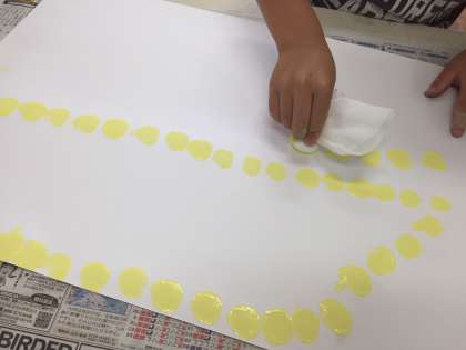 「タンポ」にインクをつけて、スタンプのようにポンポンポンっと・・・