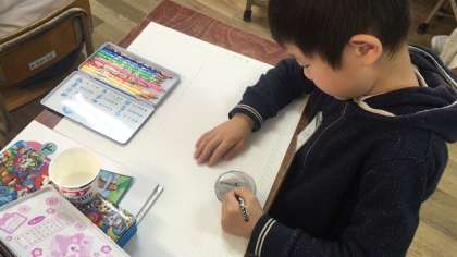 この日は、かたちをうつしとって絵を描きました。