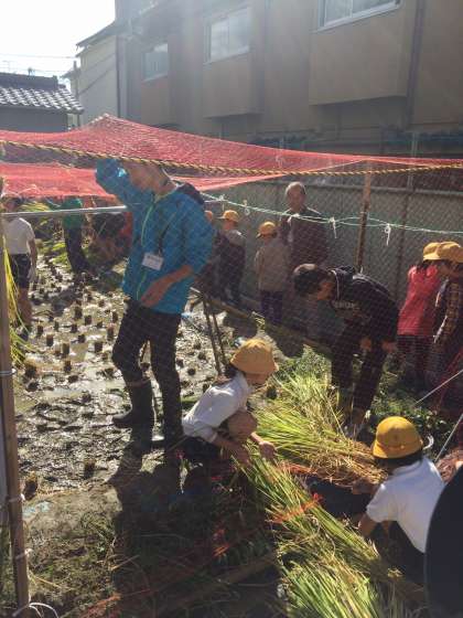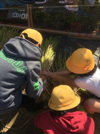 本来、鎌を使うのですが、子どもたちは危ないので、はさみを使いました。