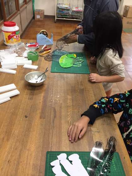 ダンゴ虫に羽をつけると、子どもたちはとてもうれしそうにダンゴ虫を手にしていました。羽には、細かな模様がびっしりと描かれています。