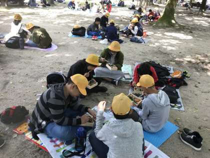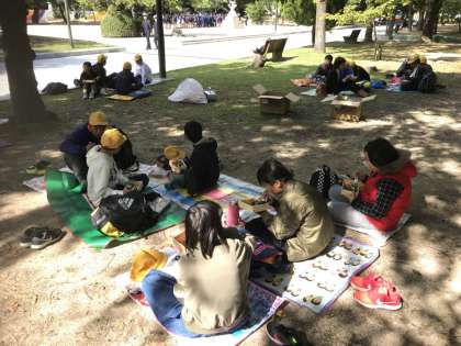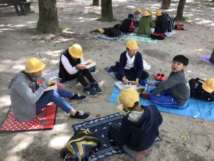 みんなしっかりと、お弁当を食べています。