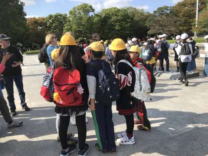 資料館見学後、平和公園内で外国人の方に平和についてのインタビューを行いました。