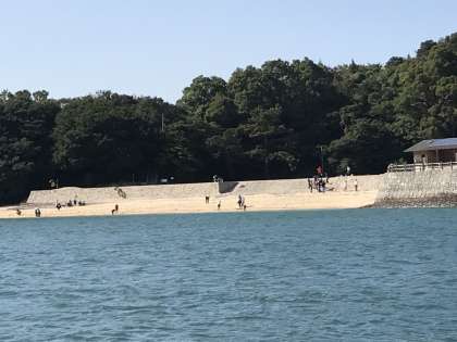 海に足をつけて見たり、砂浜を走り回ったりしています。