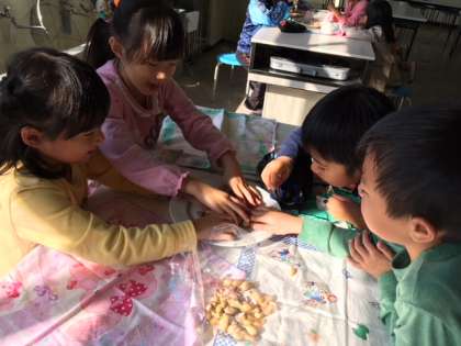 茹で落花生を初めて食べた子も多く殻を割るのも一苦労。