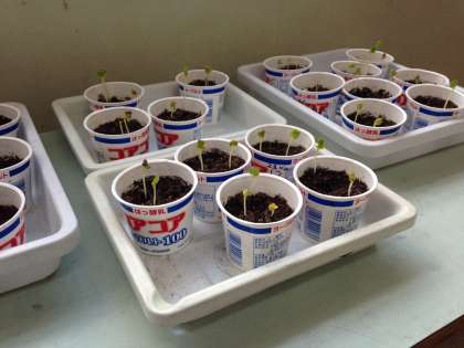 先週、種を植えた容器からニョキニョキと芽が出ていました!!