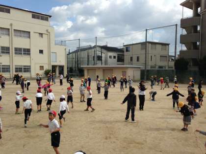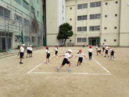台風が通過し、一気に冷え込んできました。そんな日でも、子どもたちは元気よく運動場で体を動かしています。