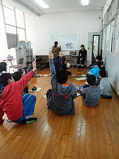 合言葉の「グー、パッ、ピーン」で、ニュースを観ていた子どもたちも姿勢よく座ることができました。