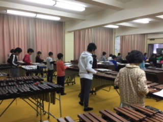 木琴や鉄琴リコーダーなど楽器に分かれて練習しています。