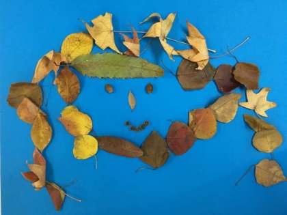 昨日の秋みつけで拾ってきた落ち葉で「はっぱアート」を作りました。