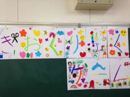 教室に、看板やポスターを貼ったりお店役の練習をしました。