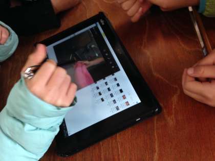 タブレットを使い、自分たちで撮影した写真を選びました。