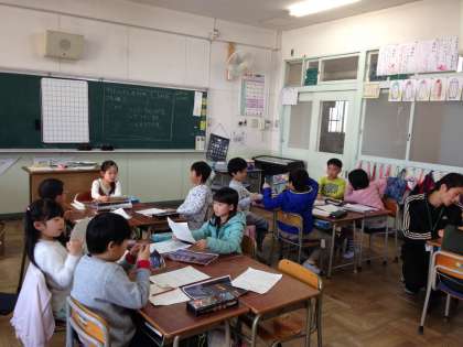 12月1日(金)の参観授業での「町たんけんの発表」に向けて、準備をしています。