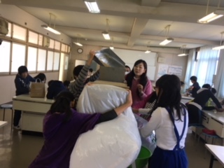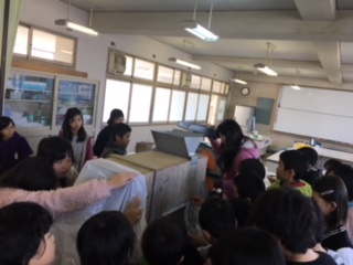扇風機でもみがらを飛ばしたとき、子どもたちは「おー!」と歓声が起こり、もみがらと玄米に分かれていることに感動していました。