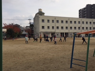 子どもたちはドッヂボールをしたり、バスケットボールをしたり、鬼ごっこをしたりと元気に運動場で遊んでいました。