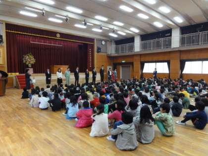 今年度新しく来た教職員メンバーと子どもたちとの出会いの場面がありました。元気のよいあいさつ、またにこにこした笑顔に、子どもたちの「わくわくした気持ち」が伝わってきました。