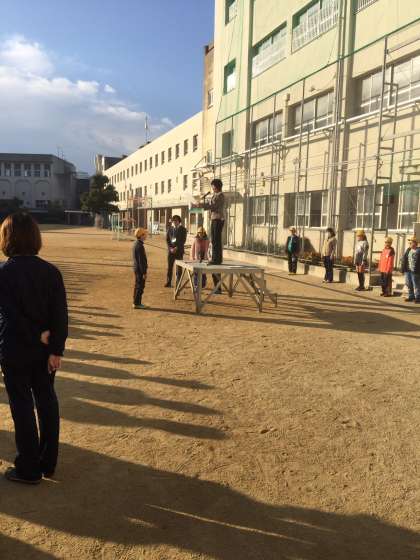 今日の児童朝会では、表彰、誕生日の発表、校長先生のお話、今月の生活目標についてのお話がありました。