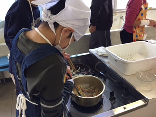 今日は、調理実習を行いました。事前に調べた調理方法を見ながら班で協力しながら行うことができました。