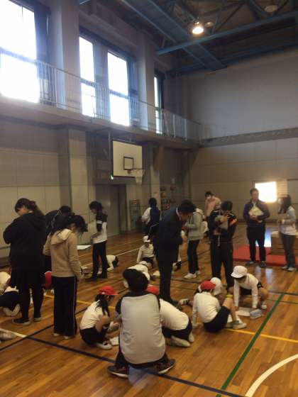 準備運動の後は、開脚とびを行い、その後台上前転に取り組みました。